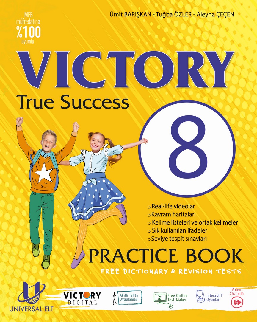 Victory 8 True Success Practice Book is a powerful supplementary book to meet the needs of students throughout the whole year both in the classroom and as a self-study source. The contexts and vocabulary tested in the practice book are selected in line with the latest official LGS tests, sample questions, National Curriculum, and course books adopted for the 8th grades.